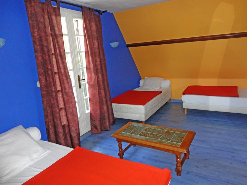 CHAMBRE N° 2 : Surface 15m° - Trois lits de 1 personnes 90 x 190 - Trois protèges matelas - Trois traversins - Trois oreillers - Trois couvertures - Trois tables de chevets avec lampes - Deux fenêtres - Une porte fenêtre avec volets en bois - Un balcon de 2m°, avec vue sur le jardin - Chauffage central avec un radiateur - Une télévision - Un DVD - Sol en parquet.