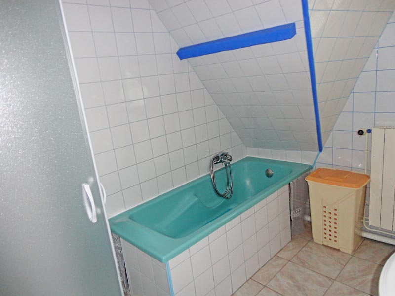 SALLE DE BAIN N° 1 : Surface 6m2 - Une fenêtre - Un lavabo - Une glace - Une baignoire - Une douche - Un meuble de rangements - Chauffage central avec un radiateur - Sol en carrelage.