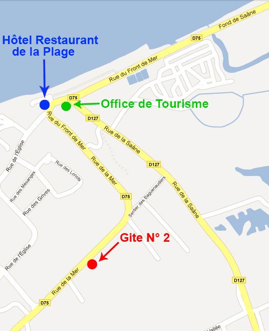 Quand vous allez vous trouver à la plage, au pied de l'Hôtel Restaurant "de la Plage", prendre la route principale qui monte vers le village, attention pas la petite route. Faire 300m, vous avez un tournant sur votre droite, faire 100m et la maison se trouve sur votre gauche.